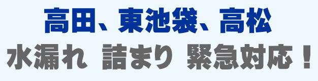 高田、東池袋、高松での水の困った即解決!急な水道トラブルに緊急でかけつけ訪問し、蛇口の水漏れ、トイレ詰まり、排水の溢れ、タンクの故障など修理いたします。